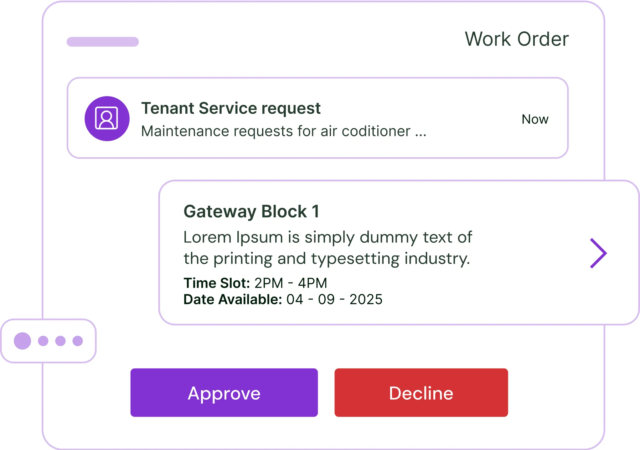 Property managers can view service requests, approve them and assign the appropriate maintenance personnel.